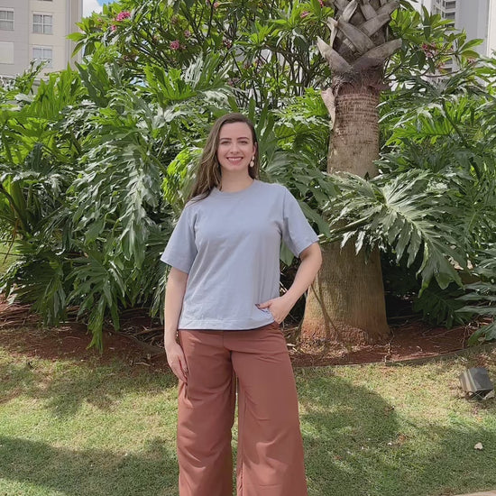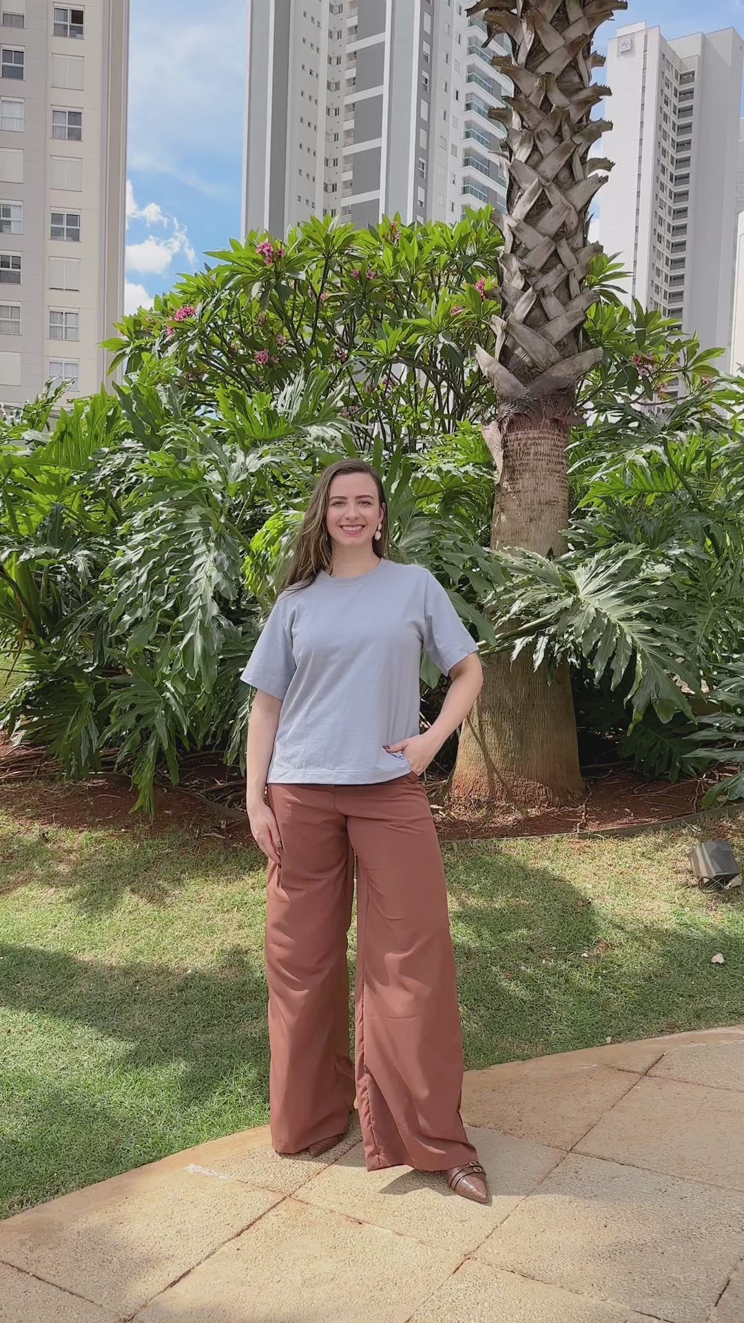 A peça mais versátil que você pode ter no armário! Seja com calça, shorts ou saia, ela combina com tudo! E é claro que a t-shirt da Bazanella não poderia ser tão básica assim: a nossa tee foi confeccionada com uma malha de algodão de toque extremamente macio, detalhe da gola canelada e aberturas laterais na barra para não prender no quadril.
