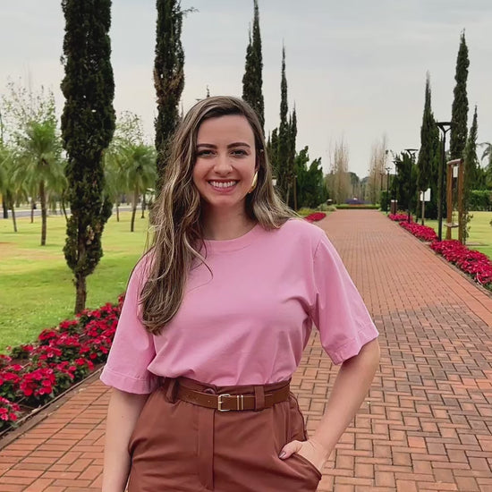 A peça mais versátil que você pode ter no armário! Seja com calça, shorts ou saia, ela combina com tudo! E é claro que a t-shirt da Bazanella não poderia ser tão básica assim: a nossa tee foi confeccionada com uma malha de algodão de toque extremamente macio, detalhe da gola canelada e aberturas laterais na barra para não prender no quadril.